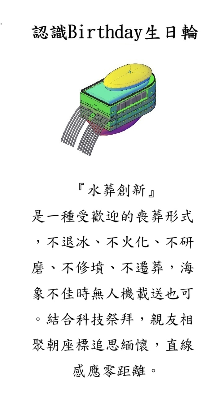 5.【投資人的優勢】擁有世界專利獨步全球的生日輪,和全套環保海葬專利、商標、商品及服務。